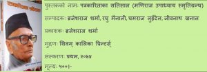 प्रस्तुत स्मृति–ग्रन्थ (पुस्तक) मा प्रशस्त जानकारी छन् । क्लिष्ट, बौद्धिक प्रदर्शनको लेखन नभइकन जटिल विषयमा पनि सरल शैली र सरस भाषामा पुस्तक संरचित छ । पुस्तक स्व. मणिराज उपाध्यायको सेरोफेरोमा लेखिएको भए पनि तत्कालीन समाज, राजनीति, आर्थिक विकास, शिक्षा, विकासका बारेमा यथेष्ट जानकारी लिपिबद्ध छन् । पुस्तकको कमजोरी भनेको सम्पादन कला फितलो हुनु हो । भाषामा प्रयुक्त हिज्जे, शब्द–विन्यास र वाक्य गठन आदिमा कहीँ कतै सम्पादकीय समूह चुकेको छ । भाषा र सम्पादनमा गम्भीरतापूर्वक ध्यान नदिइएको आभाष हुन्छ ।