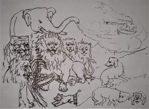१९९७ सालमा राती कालीमाटीस्थित निवासबाट राणाले मास्केलाई पक्राउ गरेको प्रसङ्गका साथ पुस्तकले नेपाली कार्टूनको उद्गम खोज्ने पाठकलाई महत्वपूर्ण जानकारी दिएको छ । त्यो के भने, १९९५ सालतिर उनै चन्द्रमान मास्केले पेन्सिल स्केचबाट कोरेको कार्टून श्रीमतीले अब सर्वस्व सहित हुने हल्ला सुनेपछि कपडामा पोको पारेर लुकाएकी रहिछन् । जतनसाथ राखेको त्यो कार्टूनमा श्री ५ र श्री ३ का श्रीपेचको प्रसङ्गलाई उजाग् गरिएको छ । राणा विरोधी सो कार्टूनमा श्री ३ (राणा) को श्रीपेचलाई हात्तीको सूँढले पानीको फोहरा (आन्दोलन/जनचेतना) बाट उडाइदिएको र श्री ५ को श्रीपेच सिंह (जनता) ले संरक्षण दिएको देखाइएको छ । यसमा पशुलाई मात्रै प्रयोग गरिएको छ । कुकुरलाई राणा शासकको रूपमा चित्रित गरिएको छ । यो पुस्तकले त्यो ऐतिहासिक कार्टून पनि समेटेको छ । यो कार्टून २०५७ साउन ३२ गते नेपाल समाचारपत्रमा पहिलोपल्ट छापिएको थियो । (माथि हेर्नुस् कार्टून)