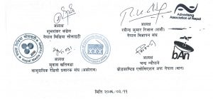 सञ्चार तथा सूचना प्रविधि मन्त्रालयले विज्ञापन सम्वन्धी व्यवस्था गर्न बनेको विधेयकमा ‘क्लिन फिड’ नीति लागू गर्ने स्पष्ट कानुनी व्यवस्था गरेकोमा यो प्रावधानलाई स्वागत गर्दै नेपाली मिडियाका संगठनहरु नेपाल मिडिया सोसाइटी, नेपाल विज्ञापन संघ, सामुदायिक रेडियो प्रसारक संघ (अकोराव) नेपाल र ब्रोडकास्टिङ एसोसिएशन अफ नेपाल (बान) ले आज संयुक्त प्रेस विज्ञप्ती जारी गरेका छन् । शुभशंकर कंडेल, अध्यक्ष नेपाल मिडिया सोसाइटी, रबीन्द्र कुमार रिजाल (शशी), अध्यक्ष नेपाल विज्ञापन संघ, सुवास खतिवडा, अध्यक्ष सामुदायिक प्रसारक संघ (अकोराव) नेपाल र चन्द्र न्यौपाने, अध्यक्ष ब्रोडकास्टिङ एसोसिएशन अफ नेपाल (बान) द्वारा हस्ताक्षरित संयुक्त प्रेस विज्ञप्तीको पूर्णपाठ निम्न अनुसार रहेको छ :