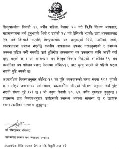 स्वास्थ्य तथा जनसङ्ख्या मन्त्रालयको विज्ञप्तिः