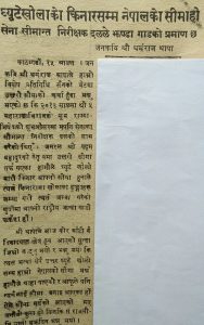 यो समाचार दैनिक समाजले २०१७ साल साउन १७ गते शुक्रवार ‘ध्यू खोलाको किनारसम्म नेपालको सीमा हो’ भन्ने शिर्षकमा प्रकाशित गरेको थियो ।